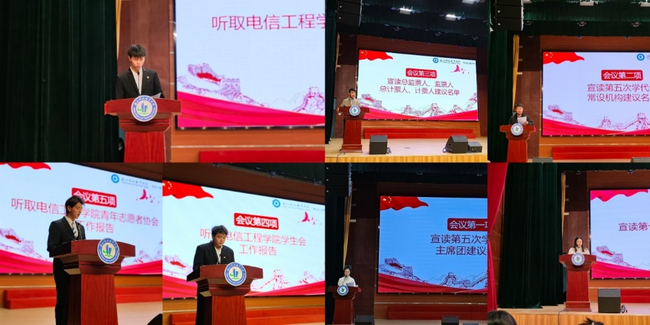 此次大会听取、审议和通过了电信工程学院分团委、学生会及青年志愿者协会工作报告,电信工程学院学生会章程(修正案),电信工程学院第五次学生代表大会常设机构及主席团建议名单;并通过无记名投票方式,最终选举产生电信工程学院新一届学生组织主席团及新一届常设机构成员。