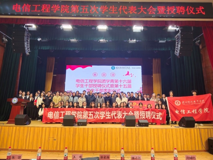 至此,电信工程学院第五次学生代表大会正式结束。未来,电信工程学院三大学生组织将不懈奋斗,牢记服务宗旨,坚持深植同学,不负光荣使命,不负师生信赖,推动学院学生工作“更上一上楼”,努力团结广大同学紧跟党,谱写青春昂扬新篇章!