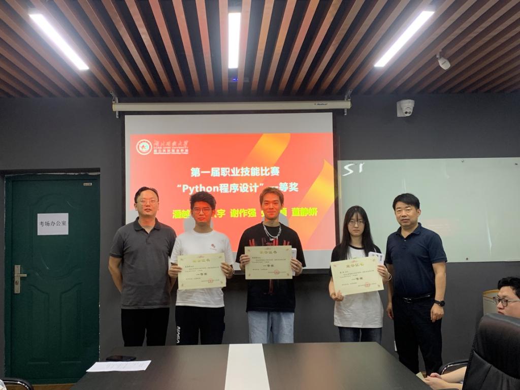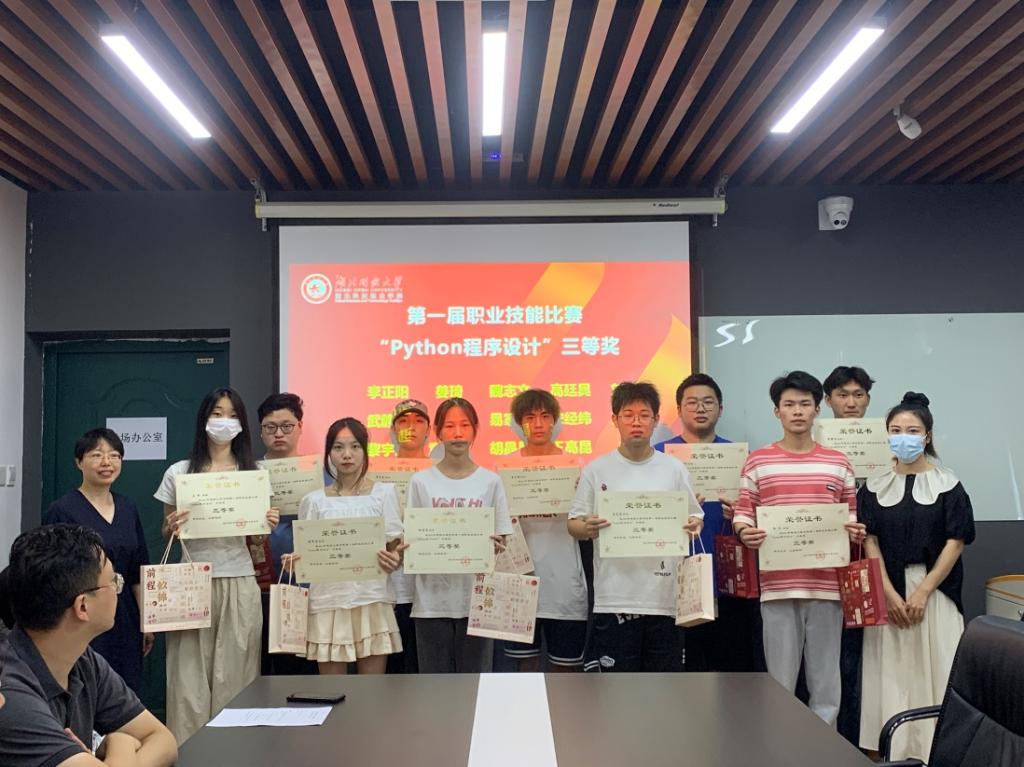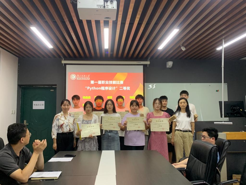 本网讯(通讯员 夏春芬 李珈/文 夏春芬/图)6月21日中午,电信工程学院首届python程序设计职业技能比赛颁奖典礼在4311会议室隆重举行。电信工程学院院长涂家海、党总支书记谢永平、副院长陈小艳、副院长朱珺、现代信息技术应用基础教研室主任李珈、学工办负责人向珅玓以及部分获奖学生参加了此次仪式。