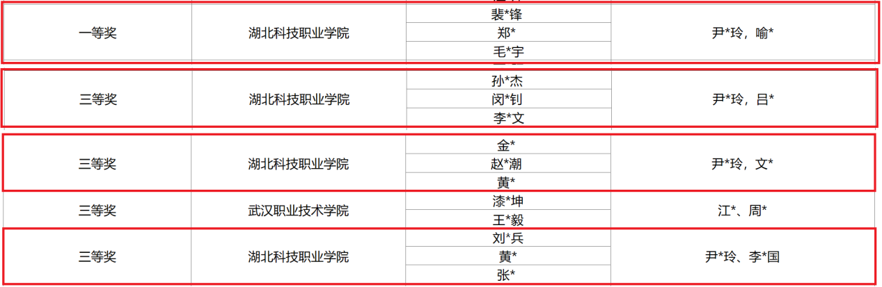 网络赛道中,尹淑玲、喻香老师指导的裴高峰、郑妍、毛卫宇获得一等奖,居湖北省第3名;吕林、文松和李主国老师指导的孙梦杰、闵鸿钊、李博文等三组同学分别获得三等奖。