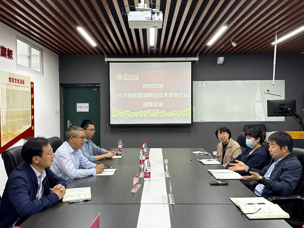 在交流会上,涂家海对长沙商贸旅游职业技术学院一行的到来表示热烈欢迎,介绍了学校的基本情况和学院近几年取得的标志性办学成果,详细介绍了人工智能技术应用专业群的国家级教学资源库、鲲鹏产业学院、数字人才培养基地以及毕业生就业创业工作典型案例等。双方就人工智能技术拥有专业的人才培养模式、课程设置、师资力量、实验实训条件等方面进行了探讨。在交流过程中,双方还就如何更好地推进产教融合、提高学生实践能力和创新能力等方面进行了深入探讨。