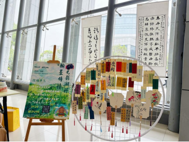 笔墨传情,祝福中升华美好温暖。“金榜题名”“不负韶华”“怀揣梦想,落笔生花”,一句句暖心祝福充斥着5号楼大厅。4月29日下午,学院举办“笔墨传情”祝福交换活动,参与同学在便利贴写上祝福,兑换“古风书签、明信片、纸扇”。活动现场气氛热烈,同学们争先参与,积极表达对师长亲友的感谢之情与美好祝福。