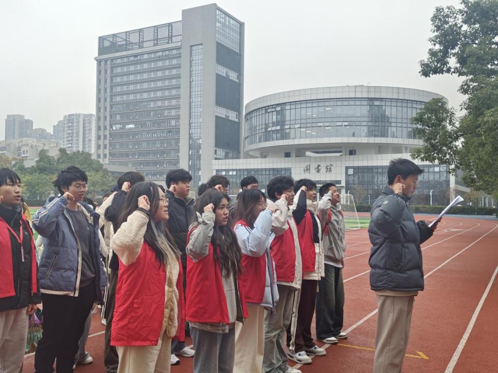 2.宪法齐宣誓,感受宪法力度。12月4日,人工智能学院40余名志愿者及参与学生整齐列队,神情庄严,在鲜艳的五星红旗下高举右手,郑重宣誓:“忠于中华人民共和国宪法,维护宪法权威,履行法定职责,忠于祖国、忠于人民……”。字字铿锵有力,展现出青年学子对宪法的尊崇和对法治的坚守。