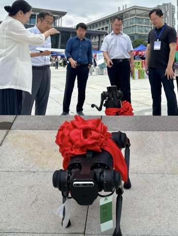科技迎新,专业兴“新”。“握手、作揖”在迎新当天,一只可爱别致的迎新吉祥物机器狗吸引了不少新生和家长的目光。为了展现学院专业特色,学院特地在迎新点准备了一只“萌萌哒”的机器狗来迎接新同学的到来。电信工程学院院长涂家海教授现场向新生及家长们介绍机器狗的运行原理以及操作方法,并指导新生与机器狗进行互动。党总支书记谢永平表示,在迎新现场的展示可以帮助新生们在开学第一天就建立对科技创新的初步印象,进而激发出对专业学习的兴趣,埋下“科创有我”的种子。