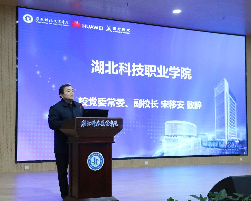 宋移安指出,湖北科技职业学院始终坚持立德树人根本任务,深入贯彻落实教育综合改革,持续推进职业教育提质培优行动计划,加强内涵建设,在办学实力、合作办学、技能竞赛等方面均取得傲人成绩,科技成果包括湖北省首家鲲鹏产业学院,对接华为生态的“1+1+N”人才培养模式的探索取得显著成效。他指出,学校与华为的强强联合,必将培养出更多具有全球视野、家国情怀、真才实学的技术技能型人才。