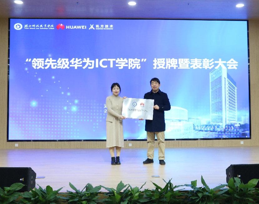 于芳向湖北科技职业学院授予“领先级华为ICT学院”牌匾