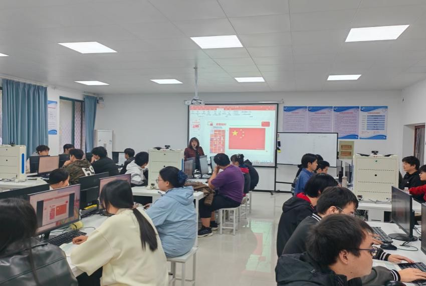 在校级课程思政示范课《python程序设计》的展示中,夏春芬老师以极具感染力的教学设计点亮课堂。她巧妙结合五星红旗的历史沿革与图案寓意开启教学,以“编程绘制国旗”为核心任务,系统讲授python标准库turtle库的图形绘制方法。教学过程中,夏老师将规范编码习惯、精益求精的工匠精神与深厚的爱国主义情怀自然融入知识点讲解,既明确了技能目标,又深化了价值引领。课堂上,理论阐释与实例演示层层递进,实训环节借助头歌在线实践平台为学生提供沉浸式项目实践场景,整体教学思路清晰、节奏紧凑,信息化教学手段运用娴熟,营造出互动热烈、高效务实的课堂氛围,充分展现了课程思政与专业教学深度融合的教学成效。